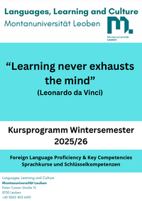 Languages, Learning and Culture Montanuniversität Leoben “Learning never exhausts the mind” (Leonardo da Vinci) Kursprogramm Wintersemester 2025/26 Foreign Language Proficiency & Key Competencies…