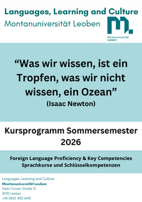 Languages, Learning and Culture Montanuniversität Leoben “Was wir wissen, ist ein Tropfen, was wir nicht wissen, ein Ozean” (Isaac Newton) Kursprogramm Sommersemester 2026 Foreign Language…